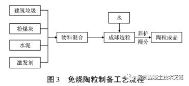 建筑垃圾再生微粉制備免燒陶粒的工藝流程如圖 3 所示。
