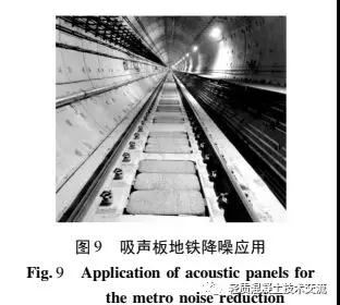 根據(jù)測(cè)試結(jié)果可以得到吸聲試件的平均吸聲系數(shù)都在 0. 55 以上, 具有較好的吸聲性能, 而 100 mm高度的試件在 630 Hz 的吸聲系數(shù)達(dá)到了 0. 92。由圖 7 中吸聲系數(shù)曲線可以看出, 3 種不同高度的吸聲曲線變化趨勢(shì)相近, 但是隨著試件高度的增加, 峰值吸聲系數(shù)有向低頻移動(dòng)的趨勢(shì)。在試驗(yàn)研究的基礎(chǔ)上, 廣西科技大學(xué)與柳州漢西鳴建材發(fā)展有限公司合作, 研制出鋪設(shè)于地鐵道床的陶?;炷廖暟?, 如圖 8 所示。并通過(guò)上海建筑科學(xué)研究院對(duì)吸聲板的降噪性能進(jìn)行了檢測(cè),得到吸聲板的降噪系數(shù)( NRC) 為 0. 8, 吸聲降噪性能達(dá)到了國(guó)家Ⅰ級(jí)標(biāo)準(zhǔn), 具有理想的吸聲降噪效果。陶?;炷廖暟逶谀蠈幍罔F 2 號(hào)線的應(yīng)用如圖 9所示。